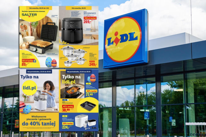 Sklep Lidl z wielkanocnymi promocjami na sprzęt kuchenny, w tym frytkownicę beztłuszczową Philips i gofrownicę Salter. Klienci mogą skorzystać z atrakcyjnych obniżek cen do 40% oraz kodów rabatowych, o czym więcej przeczytasz na Super Biznes.